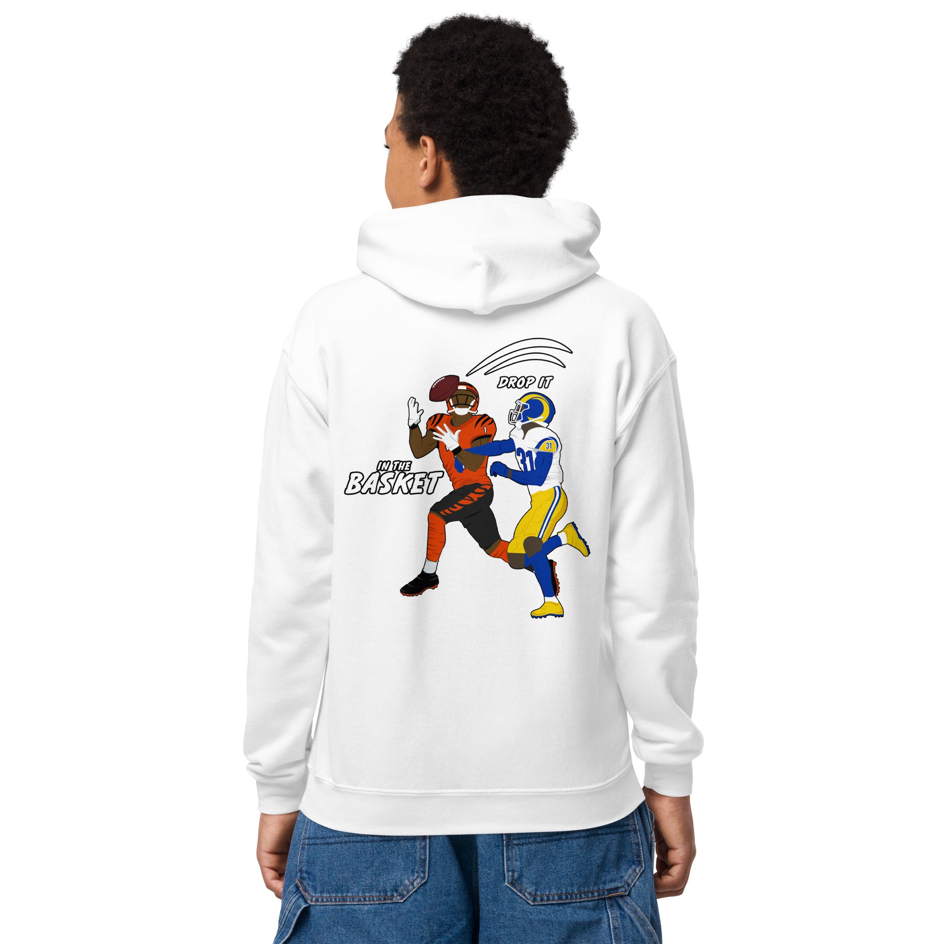 Inspired by athleticism in motion, Silhouette of Quarterback Joey Breezy Dropping it in the Basket SuperBowl LVI